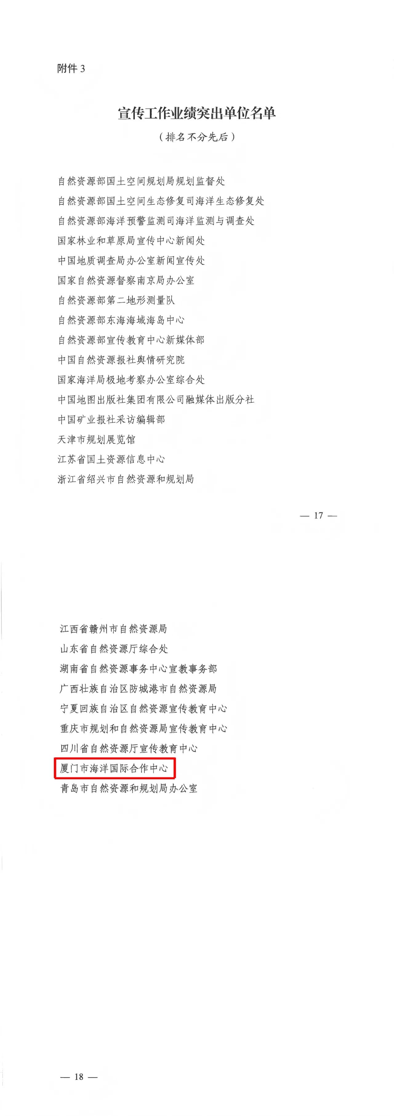 其中,厦门市海洋国际合作中心获评宣传工作业绩突出单位。