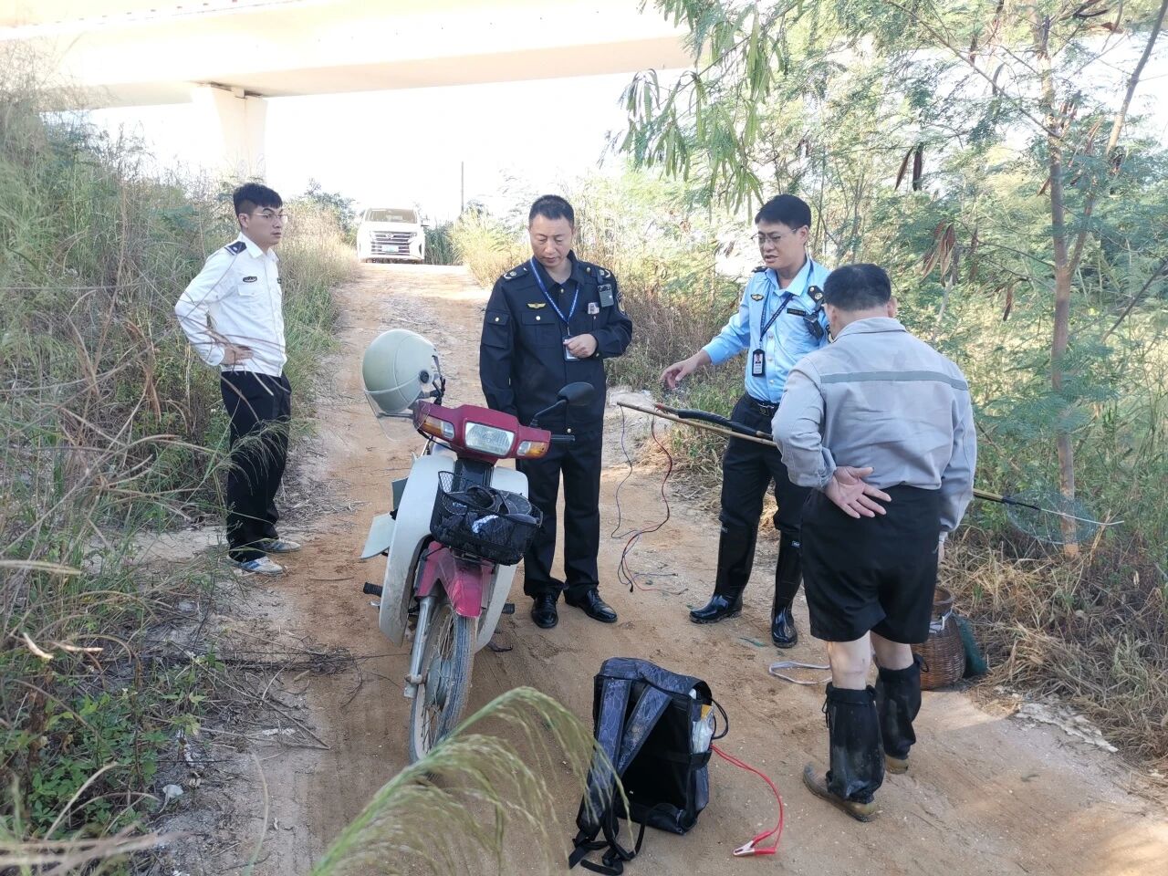 执法人员快速抵达位于下后滨马新大桥下的堤坝处,成功查获违法当事人及违法工具等。整个执法行动衔接紧密、响应迅速、定位精准,从发现线索到控制违法现场,用时仅约1小时15分钟,极大地压缩了违法者的活动空间与逃逸可能,充分展现了全过程执法“精准、迅速、流畅、高效”的特点。