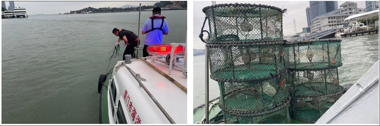 针对群众反映和日常巡查发现的线索,一大队专项组织力量,对鼓浪屿周边及第九码头附近海域开展集中整治。执法人员克服海况复杂等困难,徒手拆除多处非法设置的插杆、笼壶等捕捞设施,共清理插杆3根、笼壶10个,有力打击非法捕捞行为,净化了沿岸渔业环境。