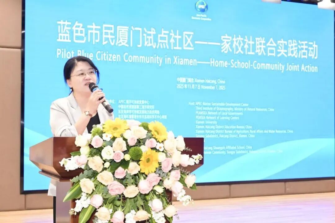 11月7日,蓝色市民厦门试点社区——家校社联合实践活动在厦门海沧湾畔举办。本次活动通过实地参访、社区游园、学生实践、海洋公益观影及清滩行动等形式,交流互鉴蓝色市民试点社区的实践经验与海沧科学教育实验区“蓝色市民”特色教育的创新路径。活动向哈尔滨市、成都市武侯区、银川市西夏区、新疆生产建设兵团第十二师等内陆城市及福建龙岩等地对扶单位线上直播,共有近2000人相聚云端,共赴蓝色之约。