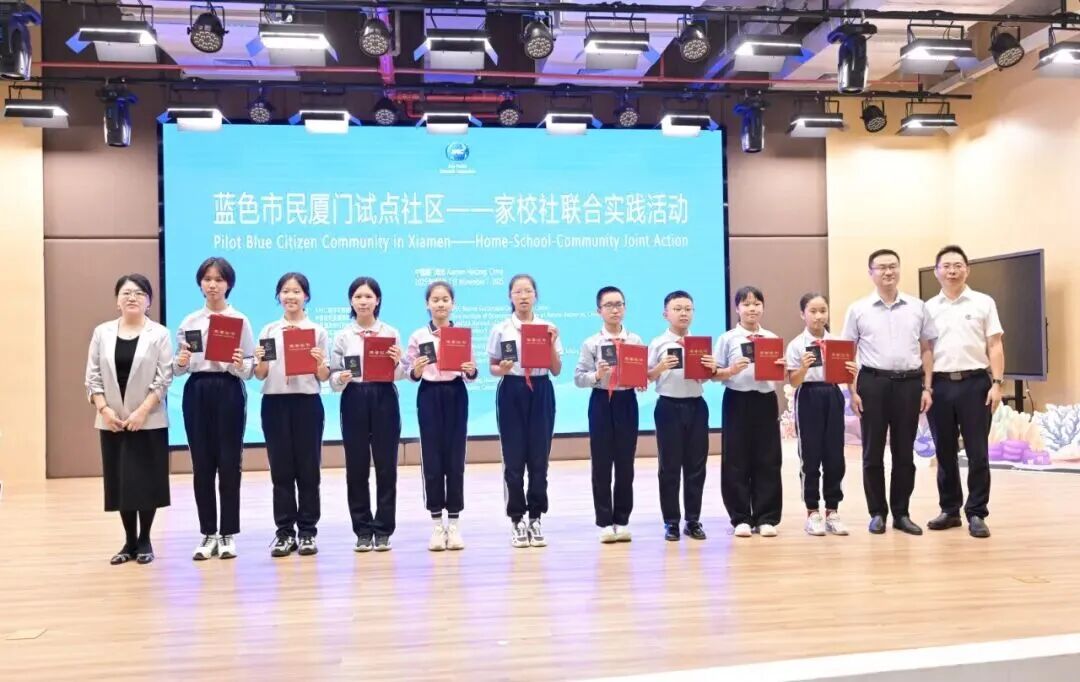 厦门市海沧区姬侃副区长出席活动开幕式。自然资源部第三海洋研究所海洋可持续发展研究中心主任张继伟研究员为本次活动致欢迎辞,蓝色市民试点社区实践是推动海洋素养教育与社区可持续发展的重要平台,通过家校社企联动,探索出高度城市化新城区提升海洋福祉的创新路径,提供了生动范例。活动现场还为蓝色市民小小引导员颁发荣誉证书,激励更多青少年成为海洋保护的倡导者与践行者。