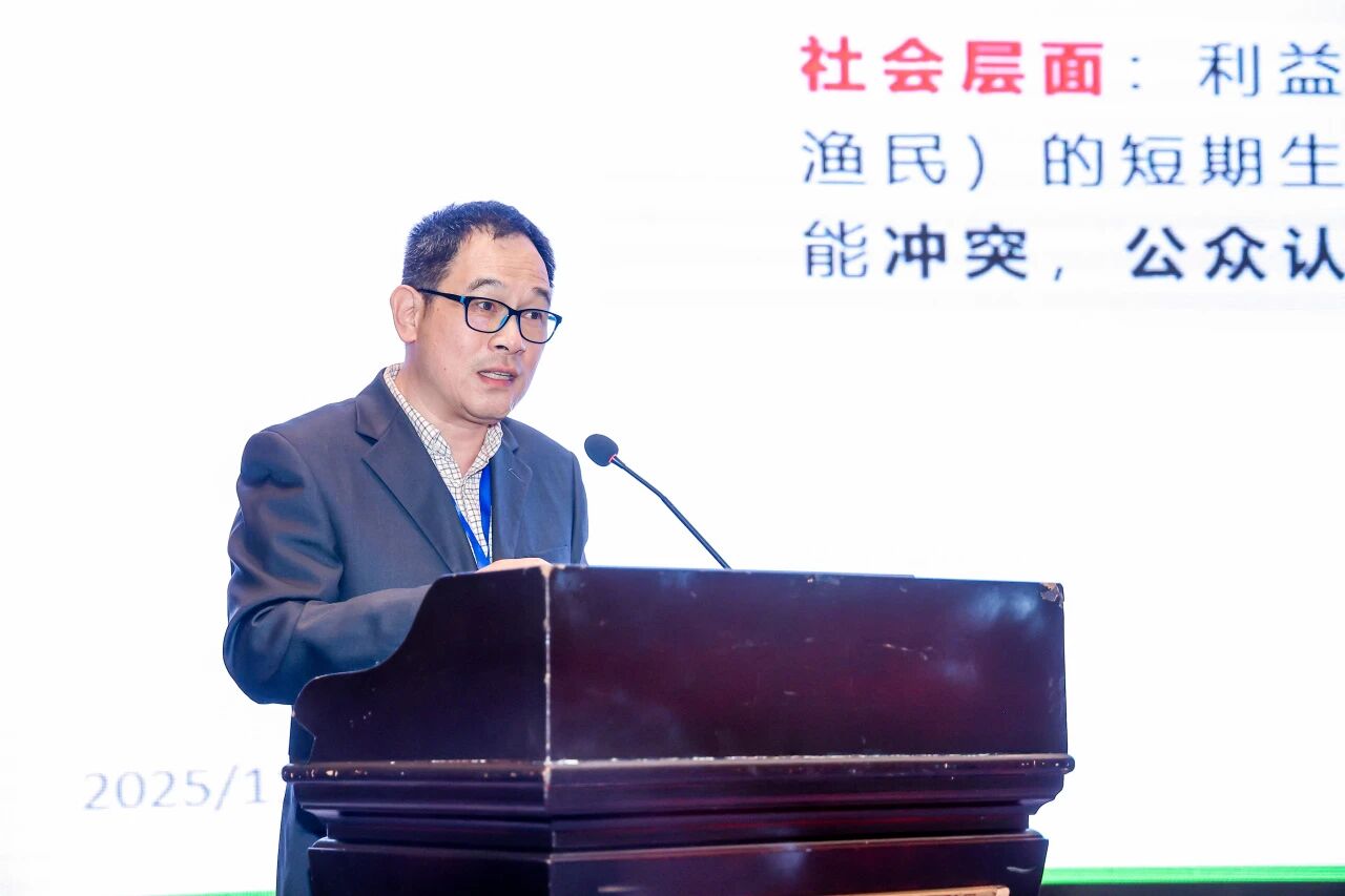 年会设立特邀报告环节。中国海洋大学海洋经济研究中心主任刘曙光教授从国家战略层面解读“十五五”时期海洋经济高质量发展的内涵,特别聚焦生态保护与可持续渔业的行动前景,提出以低碳转型为引领,推动治理机制与市场模式创新,形成从单体保护地向网络化生态空间管控升级的路径等核心启示。自然资源部东海发展研究中心副主任、首席科学家叶属峰教授就基于自然的解决方案构建海洋生态廊道作报告,结合浙江近海、厦门湾、长江口等案例,介绍区域性与物种特异性廊道构建方法,展望在生态保护红线、人工智能赋能、多元共治与跨境协作方面的实践方向。