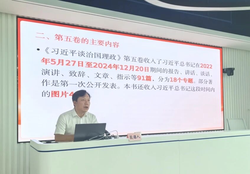 本次学习以“认真学习《习近平谈治国理政》第五卷——深刻把握第五卷的理论内涵和实践要求”为主题。王彦龙处长从著作的时代背景、理论框架、核心要义等方面进行了深入解读,重点阐释了其中蕴含的新理念、新思想、新战略,引导全体干部职工深刻领悟习近平新时代中国特色社会主义思想的精神实质和实践要求。