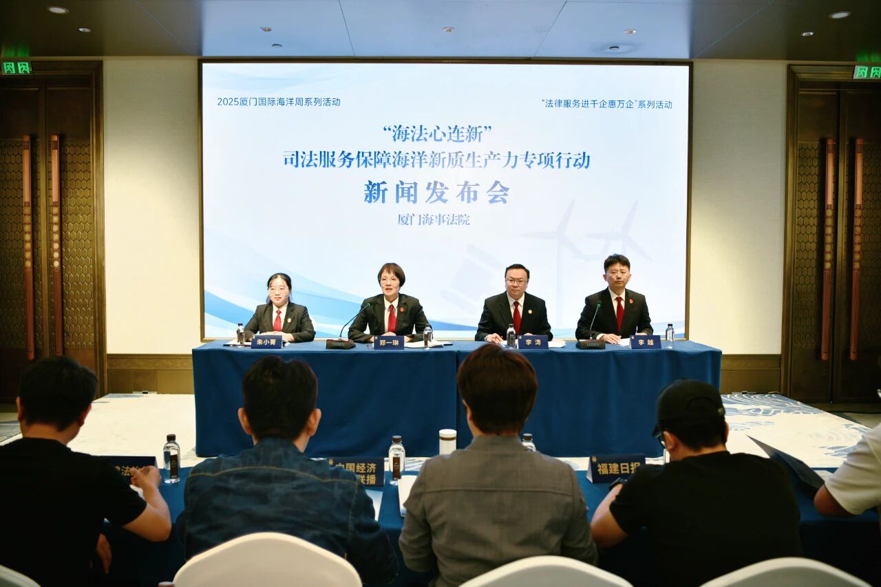 11月7日,作为海丝中央法务区“法律服务进千企惠万企”系列活动之一,厦门海事法院“海法心连新”海洋新质生产力司法服务品牌暨专项行动新闻发布会于厦门国际海洋周期间举办。
