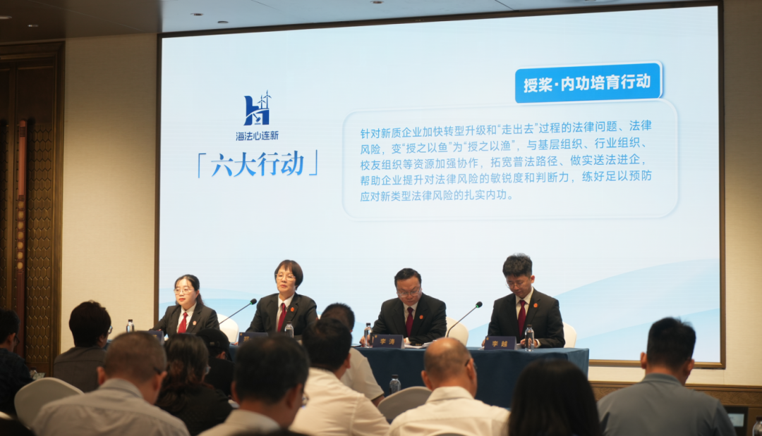活动围绕新推出的“海法心连新”司法品牌,系统介绍了其服务理念与专项行动,旨在为海洋新质生产力领域企业提供更精准的法律支撑。六家特邀媒体及全国人大、省人大代表,及七大重点行业企业、行业协会、行政机关、高校、仲裁机构、律所等代表参加了发布会。