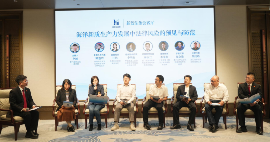 本次活动上还举办了首次“新蓝法治会客厅”座谈,来自企业、行业协会、行政机关、律师、学者、法院及全国人大代表的各方嘉宾,围绕海洋新质生产力发展中的法律风险识别与预防展开对话,共同探索行业前沿法律问题的应对路径,促进法律保障与产业实践的深度融合。