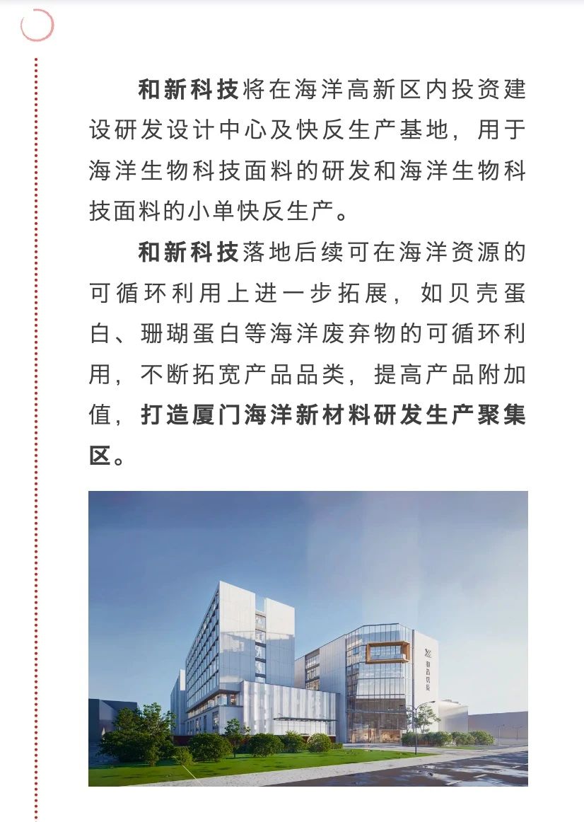 厦门和新科技有限公司是国内最大的海洋功能性内衣细分领域出口跨境电商平台的头部企业,专注于将鱼鳞蛋白纱线、海藻纱线应用于功能服饰和运动领域,是国家高新技术企业、福建省科技小巨人领军企业。